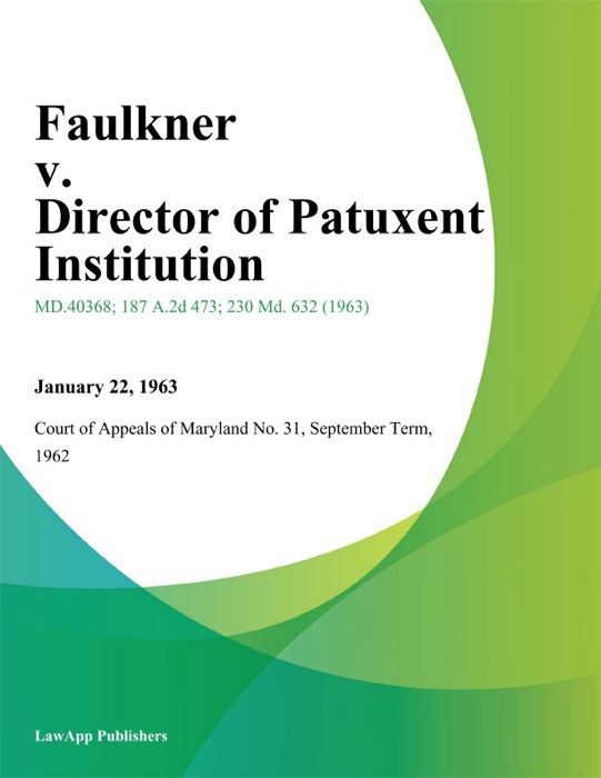 [DOWNLOAD] "Faulkner v. Director of Patuxent Institution" by September Term, 1962 Court of Appeals of Maryland No. 31 " Book PDF Kindle ePub Free